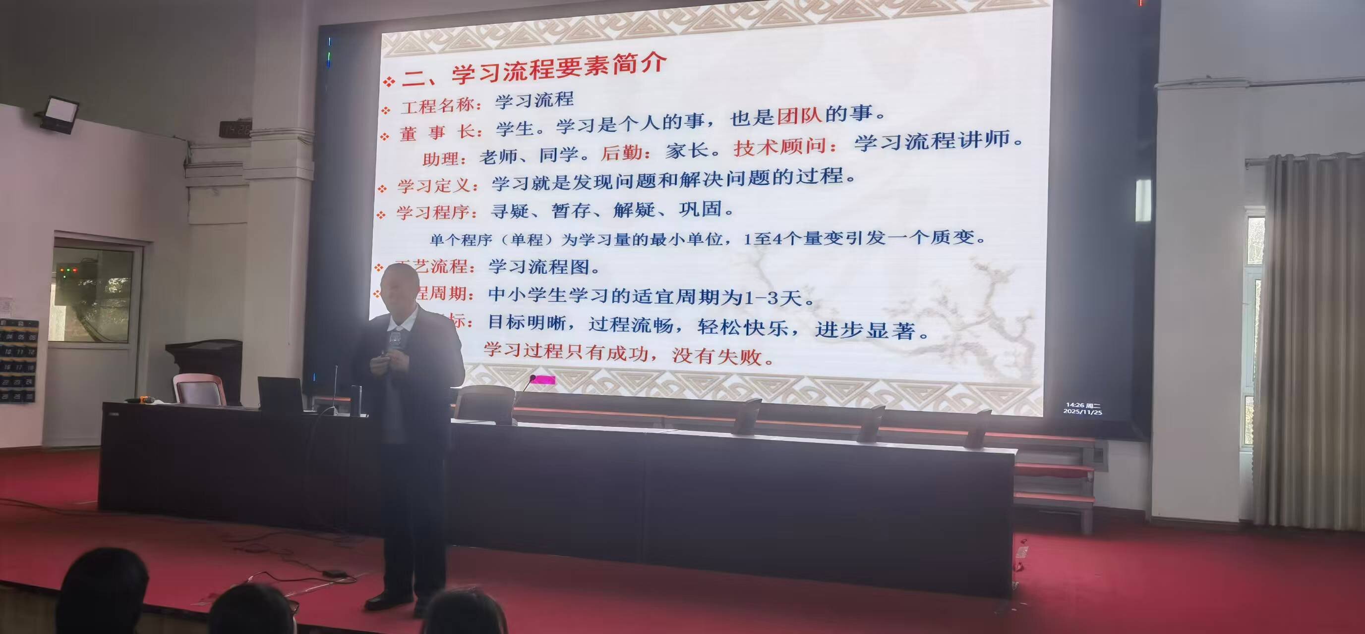 張同鑒老師多年深耕“學(xué)習(xí)改革”領(lǐng)域,其首創(chuàng)的“學(xué)習(xí)流程”理論體系在教育界廣受關(guān)注。報告中,張老師聚焦其理論核心,深入淺出地闡述了以“尋疑、暫存、解疑、鞏固”為核心的四步學(xué)習(xí)法。他特別指出,“尋疑”是發(fā)現(xiàn)問題的起點,“暫存”允許將暫時無法解決的問題有序存放而非糾結(jié)停滯,“解疑”是攻關(guān)的關(guān)鍵環(huán)節(jié),而“鞏固”則是夯實成果的保障。這一方法打破了傳統(tǒng)學(xué)習(xí)模式的局限,倡導(dǎo)將單一的學(xué)習(xí)行為延長為一個1至3天的完整認(rèn)知周期,強調(diào)遵循大腦記憶與理解的內(nèi)在規(guī)律,旨在通過流程優(yōu)化實現(xiàn)事半功倍,從根本上減輕學(xué)生的學(xué)業(yè)壓力與心理負(fù)擔(dān)。