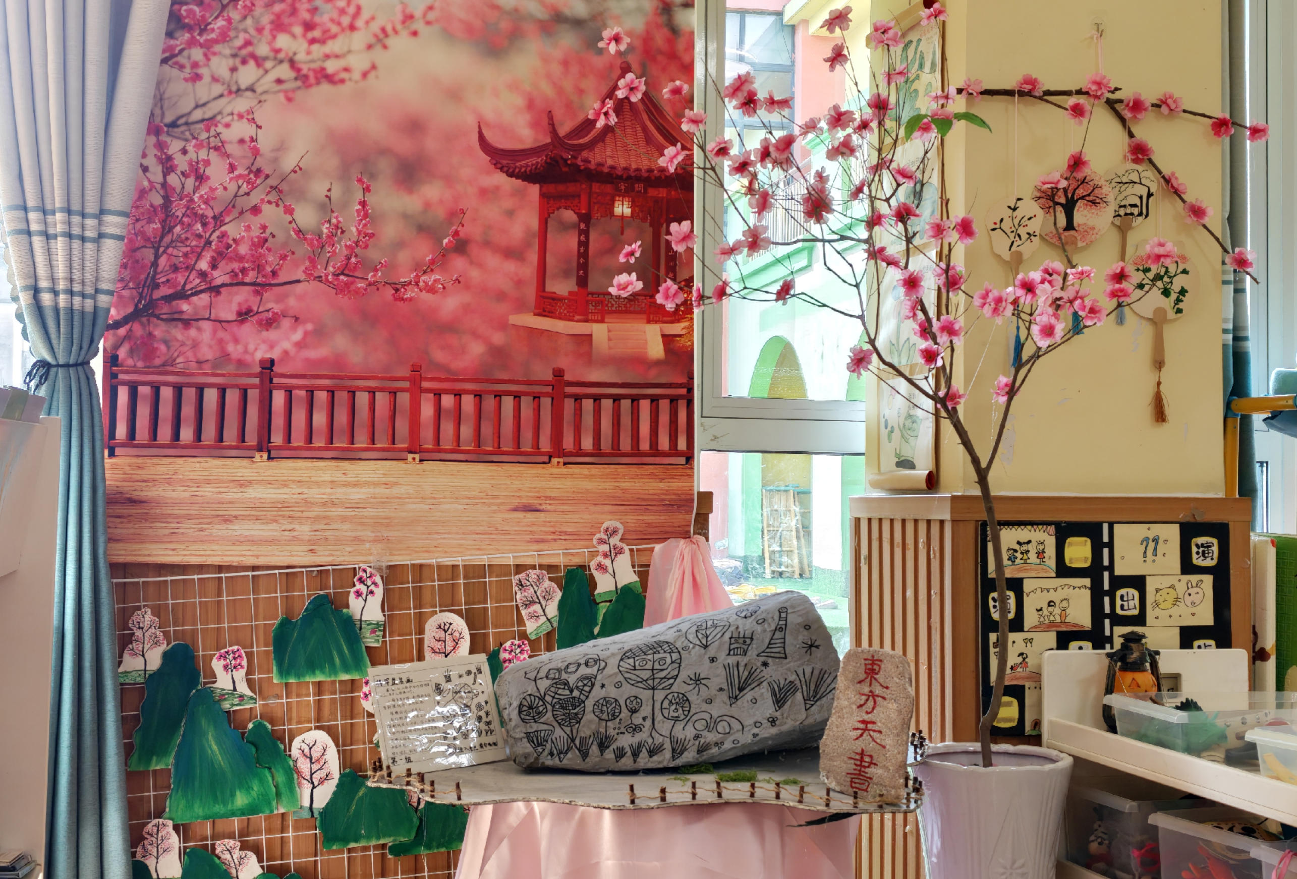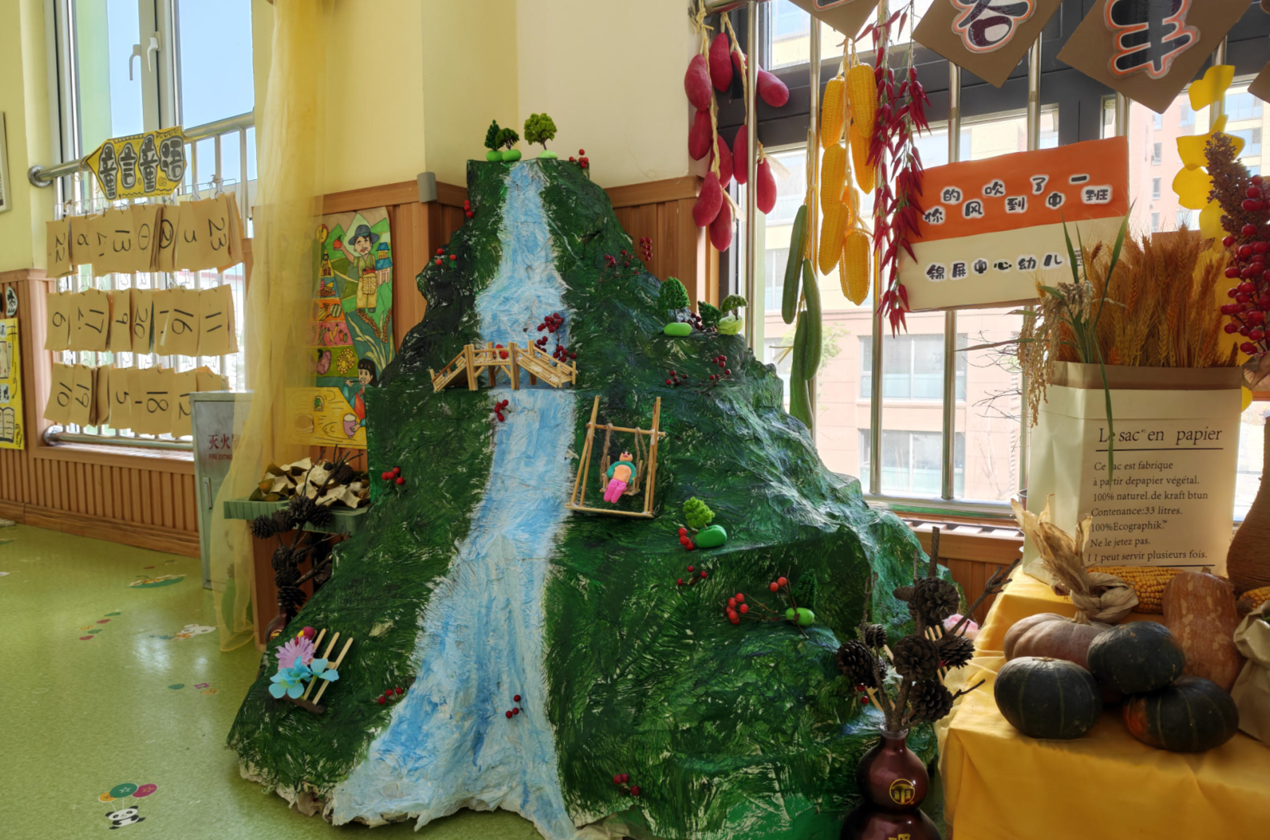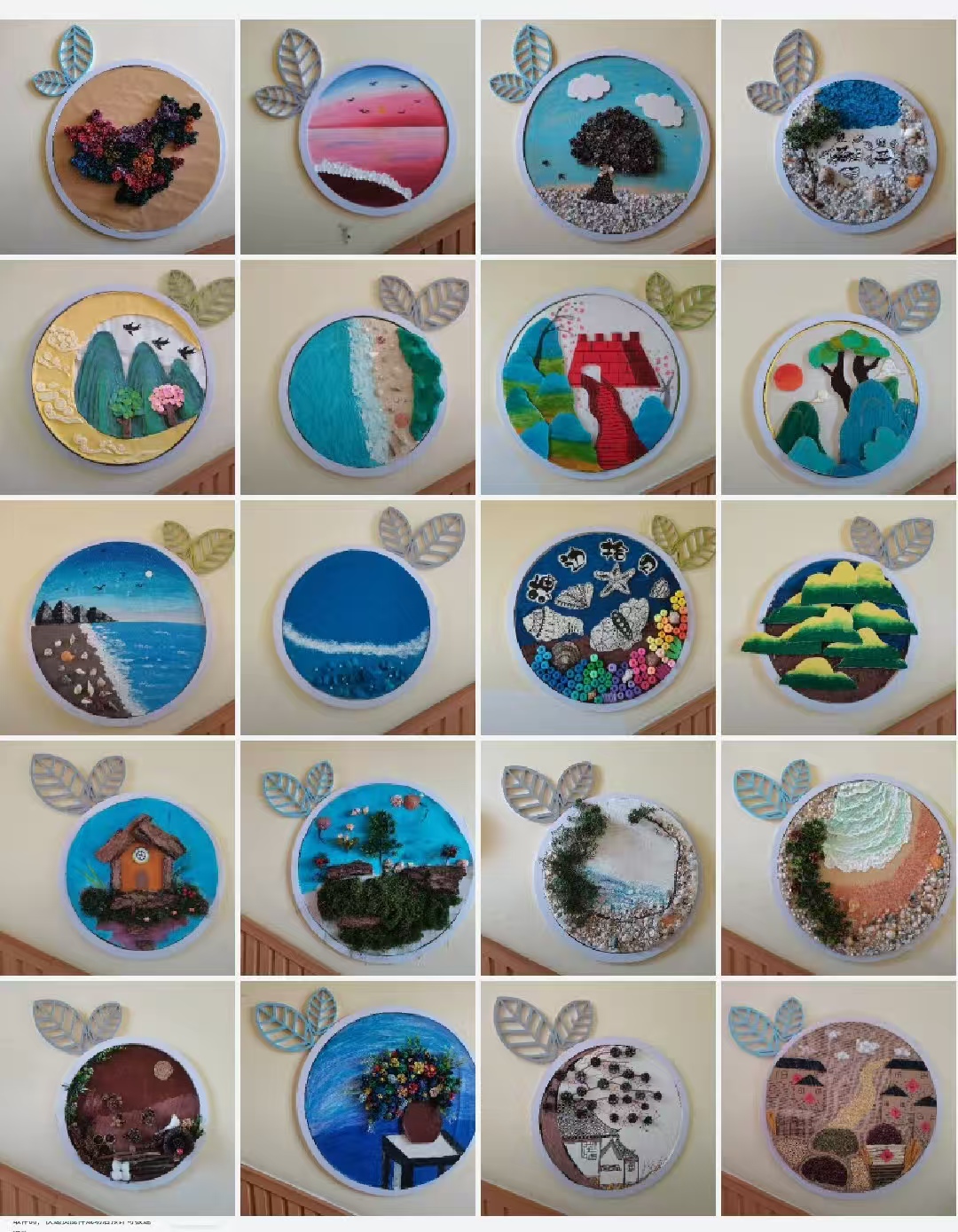 活動(dòng)中,教師們走進(jìn)桃花澗自然景區(qū),收集散落的松果、枯枝等天然材料,將山海傳說(shuō)中的清廉意象與手工創(chuàng)作相結(jié)合。大家充分發(fā)揮創(chuàng)意,把松果、枯樹(shù)枝等自然材料打磨、拼接、彩繪,制作成一個(gè)個(gè)寓意“圓滿廉潔”的圓形環(huán)創(chuàng)作品。幼兒園已將這些環(huán)創(chuàng)作品布置在走廊、活動(dòng)室等區(qū)域,打造“廉潔文化長(zhǎng)廊”。孩子們?cè)谟^賞、觸摸中感受自然與藝術(shù)的融合,潛移默化地接受清廉文化的熏陶。